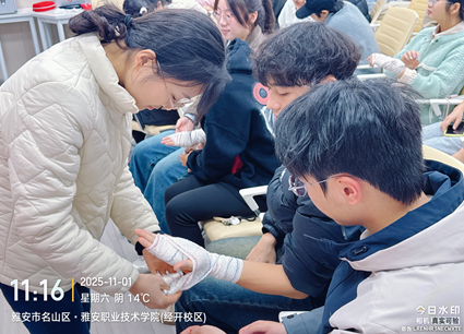 为进一步提升全体学生的自救互救能力,筑牢校园安全防线,11月1日,基础医学院于经开区校区5201、5203教室成功举办了“红十字救护员”第一期专项培训,共有51名学生踊跃参与。